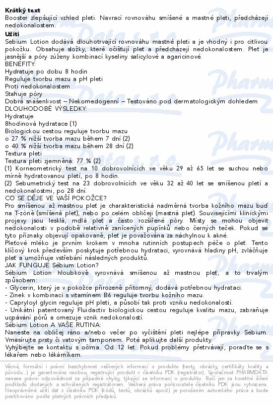 Sébium Lotion 200 ml působí do hloubky pro navrácení rovnováhy smíšené a mastné pleti. Trojí úcinek: osmihodinová hydratace, regulace kožního mazu a pH pokožky.