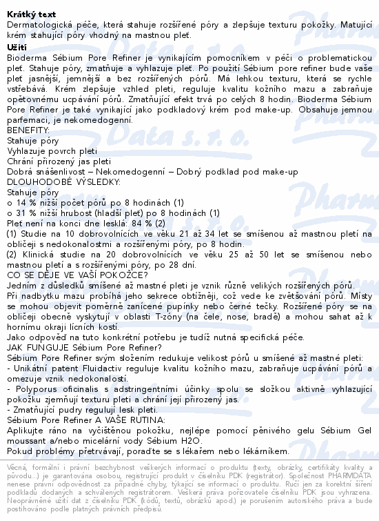 Sébium Pore Refiner - aktivní sérum na okamžité stažení kožních pórů mastné nebo smíšené pokožky. Zlepšuje vzhled pokožky a její čistotu. Patentovaný komplex Fluidactiv zároveň ovlivňuje tvorbu kožního mazu a tím zabraňuje ucpávání pórů.