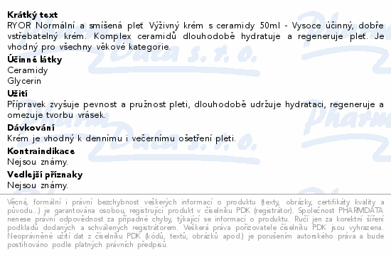 RYOR Normální a smíšená pleť Výživný krém s ceramidy 50ml - Vysoce účinný, dobře vstřebatelný krém. Komplex ceramidů dlouhodobě hydratuje a regeneruje pleť. Je vhodný pro všechny věkové kategorie.