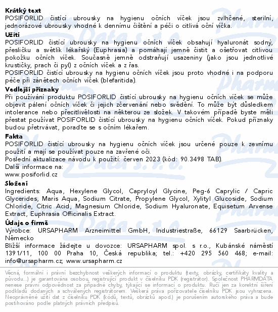 POSIFORLID® čistící ubrousky na hygienu očních víček jsou zvlhčené, sterilní, jednorázové ubrousky vhodné k dennímu čištění a péči o citlivá oční víčka.