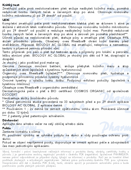Zmatňující péče proti nedokonalostem pleti snižuje nadbytek kožního mazu, pomáhá redukovat tvorbu černých teček a červených stop po akné. Obnovuje rovnováhu kožního mikrobiomu již po 29 dnech* od použití.