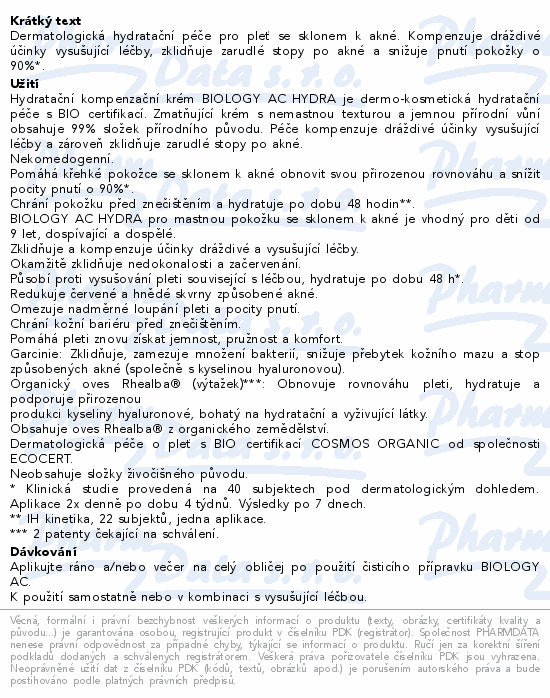 Dermatologická hydratační péče pro pleť se sklonem k akné. Kompenzuje dráždivé účinky vysušující léčby, zklidňuje zarudlé stopy po akné a snižuje pnutí pokožky o 90%*.