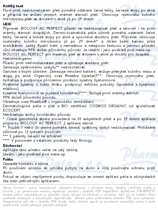 Fluid proti nedokonalostem pleti pomáhá odstranit černé tečky, červené stopy po akné a přispívá ke snížení prvních známek stárnutí pleti. Obnovuje rovnováhu kožního mikrobiomu pleti se sklonem k akné již po 29 dnech.
