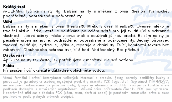 A-DERMA. Tyčinka na rty 4g. Balzám na rty s mlékem z ovsa Rhealba. Na suché, podrážděné, popraskané a poškozené rty.