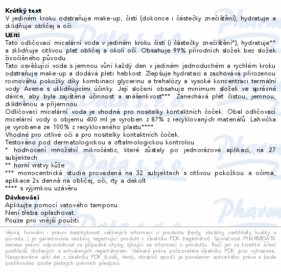 AVENE Odličovací micelární voda 400ml