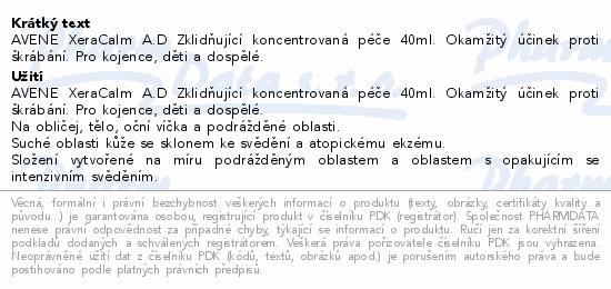 AVENE XeraCalm A.D Zklidňující koncentrovaná péče 40ml. Okamžitý účinek proti škrábání. Pro kojence, děti a dospělé.