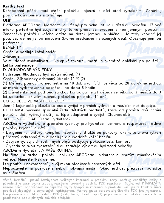 ABCDerm Hydratant je hydratační mléko, které chrání pokožku před suchostí. Vyvinutý pro suchou a potenciálně atopickou pokožku.