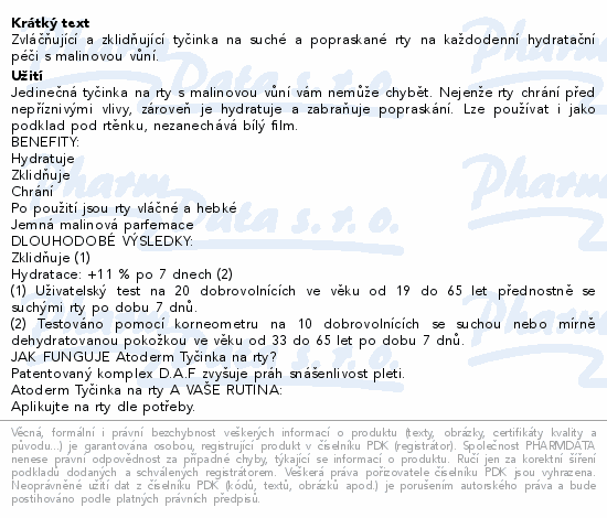 Atoderm tyčinka na rty je regenerační, zklidňující a zvláčňující tyčinka na suché a rozpraskané rty.
