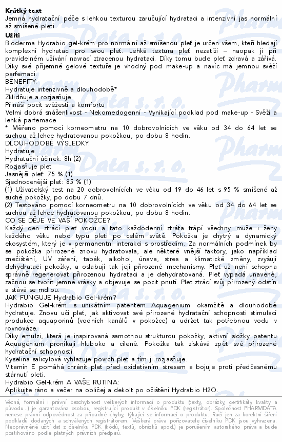 BIODERMA Hydrabio Gel-Créme 40 ml je hydratační péče s lehkou texturou pro normální až smíšenou pleť.