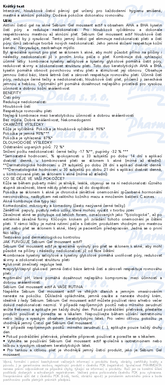 BIODERMA Sébium Gel moussant actif kombinuje dvě vyhlazovací aktivní složky (kyselinu salicylovou + glykolovou), které intenzivně čistí pleť bez vysušování. Respektuje přirozenou rovnováhu kůže.