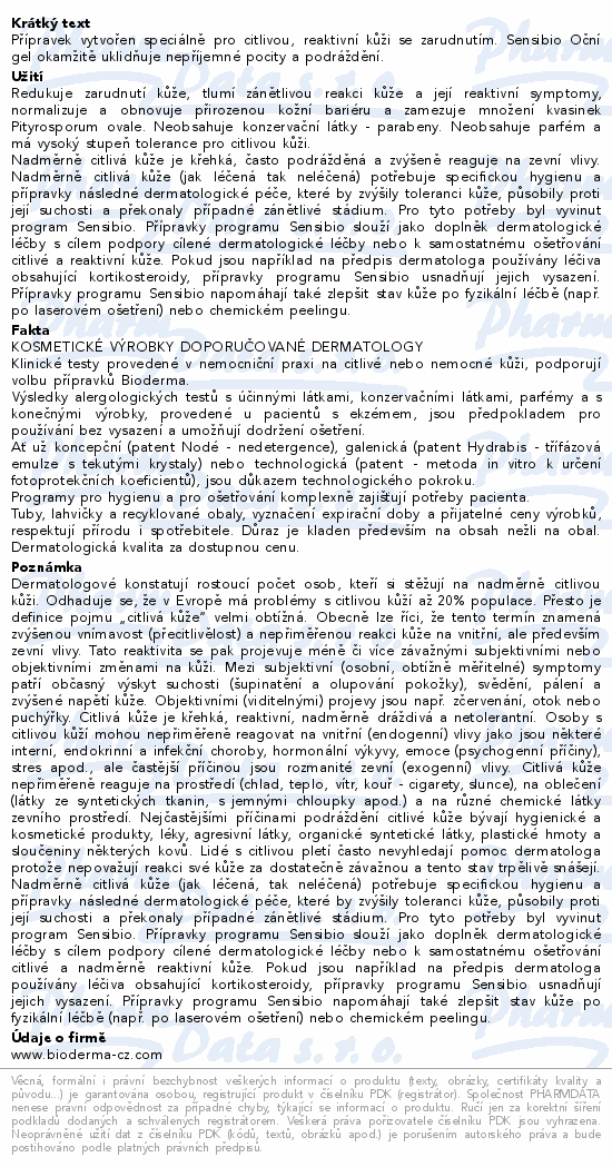 Přípravek vytvořen speciálně pro citlivou, reaktivní kůži se zarudnutím. Sensibio Oční gel okamžitě uklidňuje nepříjemné pocity a podráždění.