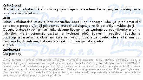 Hloubkově hydratační krém s konopným olejem za studena lisovaným, se zklidňujícím a regeneračním účinkem
