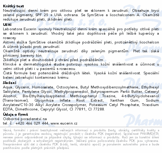 Neutralizující denní krém pro citlivou pleť se sklonem k zarudnutí. Obsahuje krycí zelené pigmenty, SPF 25 + UVA ochrana. Se SymSitive a licochalconem A. Okamžitě redukuje zarudnutí pleti, zklidnění pleti.