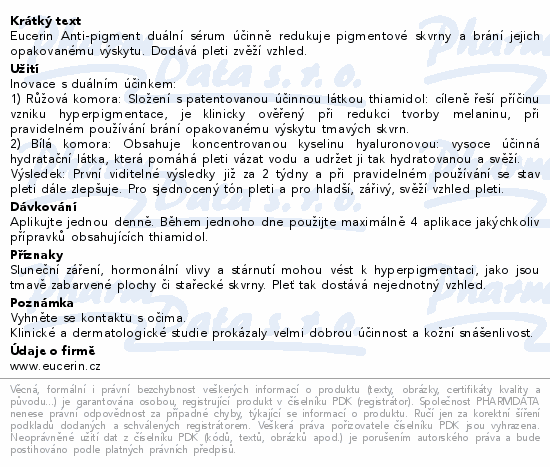 Eucerin Anti-pigment duální sérum účinně redukuje pigmentové skvrny a brání jejich opakovanému výskytu. Dodává pleti zvěží vzhled.