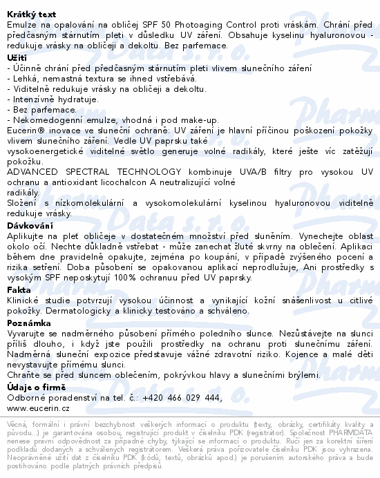 EUCERIN SUN emulze proti vráskám SPF50 50ml