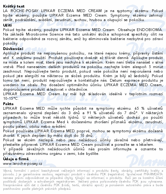 LA ROCHE-POSAY LIPIKAR ECZEMA MED CREAM je na syptomy ekzému. Pokud trpíte ekzémy, použijte LIPIKAR Eczema MED Cream. Symptomy ekzému zahrnují zánět, podráždění, svědění, zarudnutí, suchou, hrubou a olupující se pokožku.
