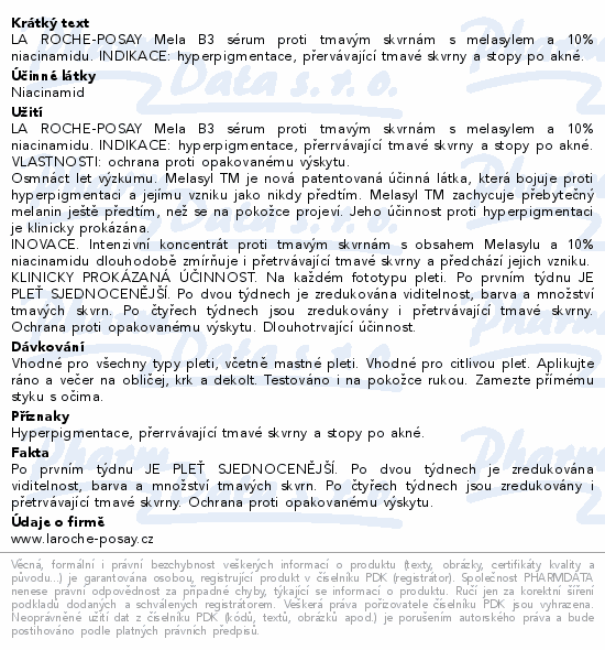 LA ROCHE-POSAY MELA B3 sérum je vysoce účinné dermokosmetické sérum zaměřené na sjednocení tónu pleti, zmírnění stop po akné, korekci pigmentových skvrn a prevenci jejich opětovného výskytu.