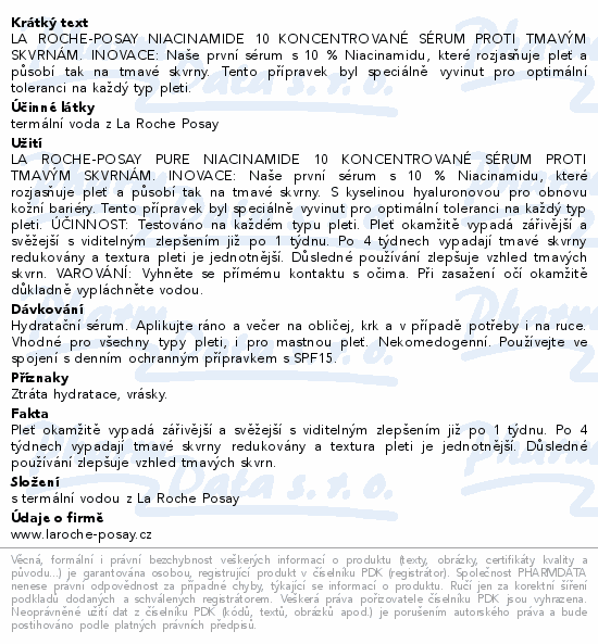 LA ROCHE-POSAY NIACINAMIDE 10 KONCENTROVANÉ SÉRUM PROTI TMAVÝM SKVRNÁM. INOVACE: Naše první sérum s 10 % Niacinamidu, které rozjasňuje pleť a působí tak na tmavé skvrny. Tento přípravek byl speciálně vyvinut pro optimální toleranci na každý typ pleti.
