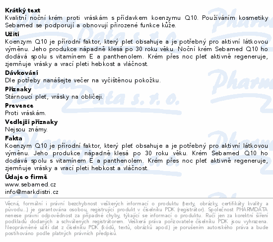 Kvalitní noční krém proti vráskám s přídavkem koenzymu Q10. Používáním kosmetiky Sebamed se podporují a obnovují přirozené funkce kůže.