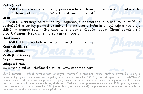 SEBAMED Ochranný balzám na rty poskytuje trojí ochranu pro suché a popraskané rty. SPF 30 chrání pokožku proti UVA a UVB slunečním paprskům.