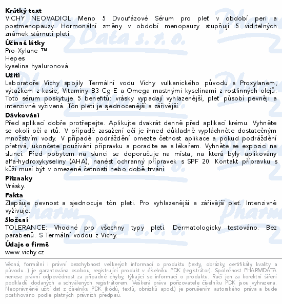 VICHY NEOVADIOL Meno 5 Dvoufázové Sérum pro pleť v období peri a postmenopauzy. Hormonální změny v období menopauzy stupňují 5 viditelných známek stárnutí pleti.