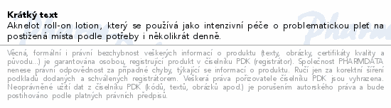 Aknelot roll-on lotion, který se používá jako intenzivní péče o problematickou pleť na postižená místa podle potřeby i několikrát denně.