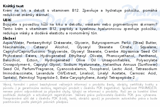 Krém na krk a dekolt s vitaminem B12. Zpevňuje a hydratuje pokožku, pomáhá redukovat známky stárnutí.