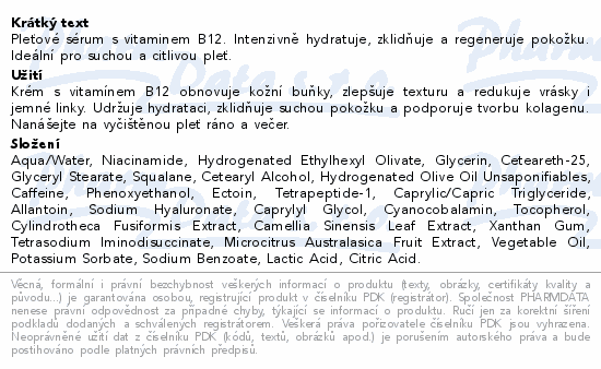 Pleťové sérum s vitaminem B12. Intenzivně hydratuje, zklidňuje a regeneruje pokožku. Ideální pro suchou a citlivou pleť.