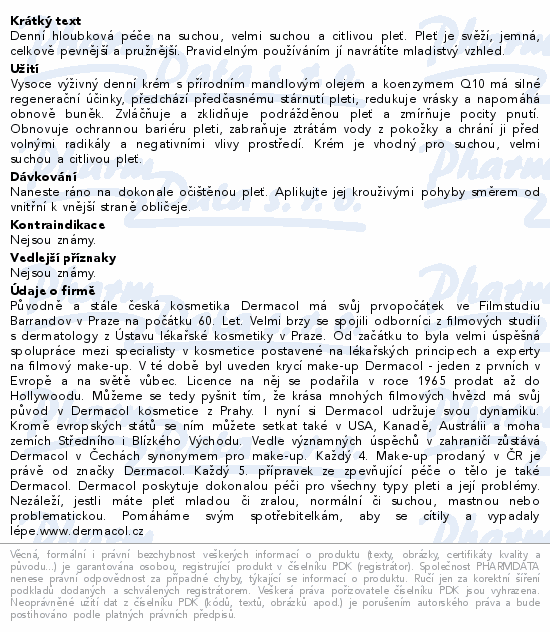 Denní hloubková péče na suchou, velmi suchou a citlivou pleť. Pleť je svěží, jemná, celkově pevnější a pružnější. Pravidelným používáním jí navrátíte mladistvý vzhled.