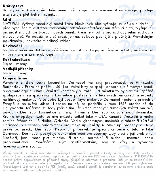 Bohatý noční krém s přírodním mandlovým olejem a vitaminem A regeneruje, posiluje a zvláčňuje pleť během spánku.