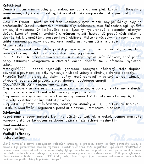 EVELINE GOLD LIFT Expert Denní/Noční krém 50+ 50ml