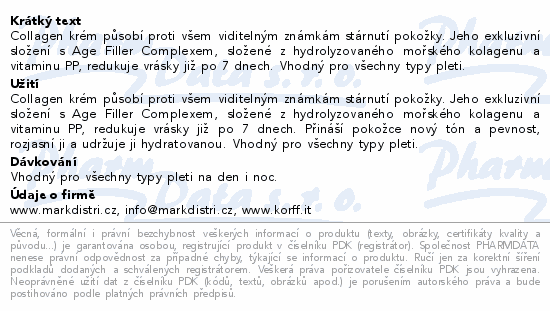 Collagen krém působí proti všem viditelným známkám stárnutí pokožky. Jeho exkluzivní složení s Age Filler Complexem, složené z hydrolyzovaného mořského kolagenu a vitaminu PP, redukuje vrásky již po 7 dnech. Vhodný pro všechny typy pleti.