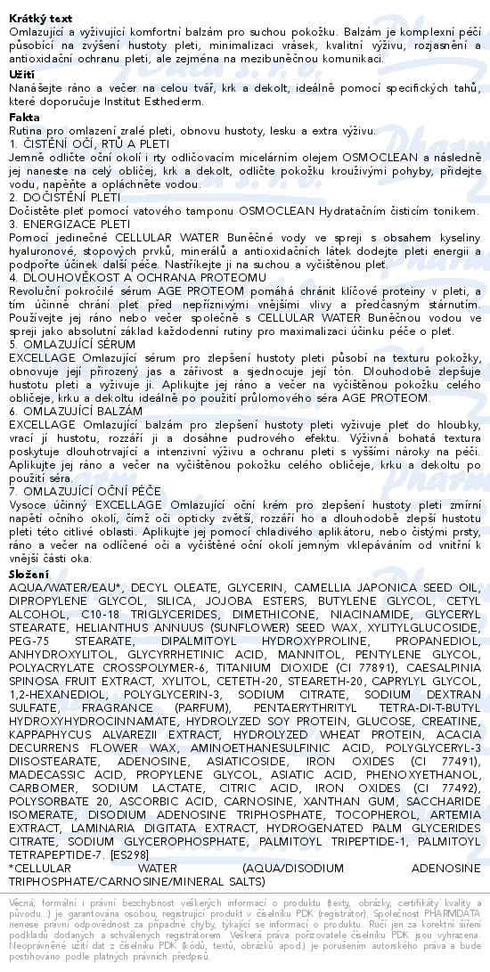 Omlazující a vyživující komfortní balzám pro suchou pokožku. Balzám je komplexní péčí působící na zvýšení hustoty pleti, minimalizaci vrásek, kvalitní výživu, rozjasnění a antioxidační ochranu pleti, ale zejména na mezibuněčnou komunikaci.