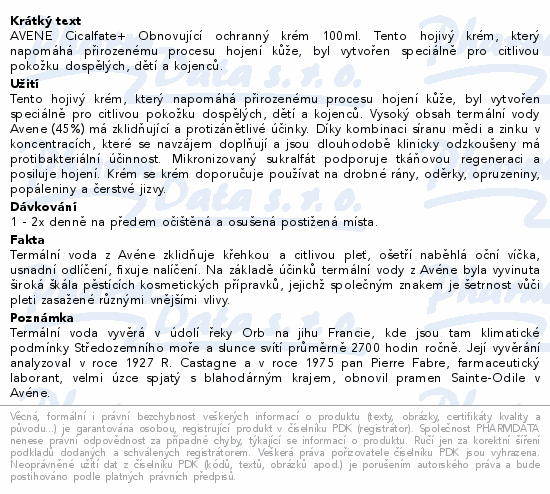 AVENE Cicalfate+ Obnovující ochranný krém 100ml. Tento hojivý krém, který napomáhá přirozenému procesu hojení kůže, byl vytvořen speciálně pro citlivou pokožku dospělých, dětí a kojenců.