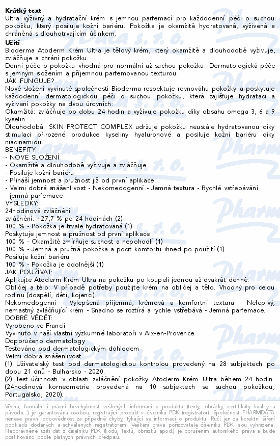 Ultra výživný a hydratační krém s jemnou parfemací pro každodenní péči o suchou pokožku, který posiluje kožní bariéru. Pokožka je okamžitě hydratovaná, vyživená a chráněná s dlouhotrvajícím účinkem.