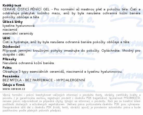 CERAVE ČISTICÍ PĚNÍCÍ GEL - Pro normální až mastnou pleť a pokožku těla. Čistí a odstraňuje přebytek kožního mazu, aniž by byla narušena ochranná kožní bariéra pokožky obličeje a těla.