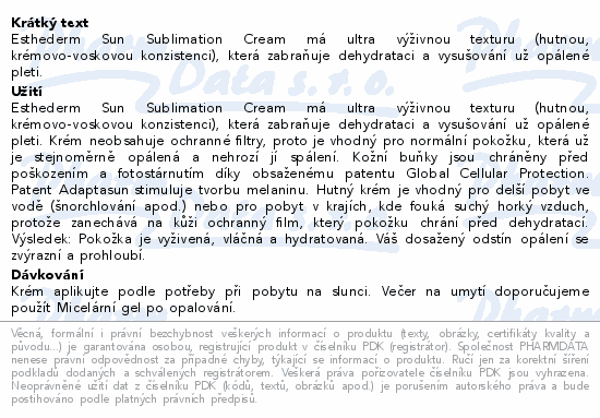 Esthederm Sun Sublimation Cream má ultra výživnou texturu (hutnou, krémovo-voskovou konzistenci), která zabraňuje dehydrataci a vysušování už opálené pleti.