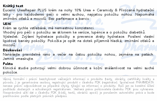 Eucerin UreaRepair PLUS krém na nohy 10% Urea + Ceramidy & Přirozené hydratační látky - pro každodenní péči o velmi suchou, napjatou pokožku nohou. Napomáhá zmírnění otlaků a mozolů. Bez parfemace a barviv.