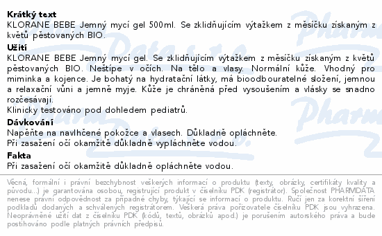 KLORANE BEBE Jemný mycí gel 500ml. Se zklidňujícím výtažkem z měsíčku získaným z květů pěstovaných BIO.