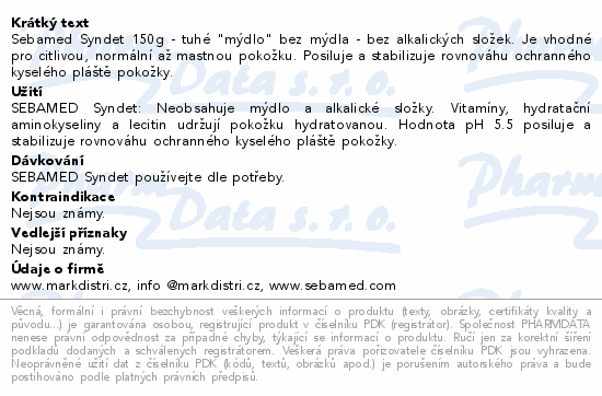 Sebamed Syndet 150g - tuhé "mýdlo" bez mýdla - bez alkalických složek. Je vhodné pro citlivou, normální až mastnou pokožku. Posiluje a stabilizuje rovnováhu ochranného kyselého pláště pokožky.