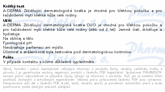 A-DERMA Zklidňující dermatologická kostka je vhodná pro křehkou pokožku a pro každodenní mytí křehké kůže celé rodiny.