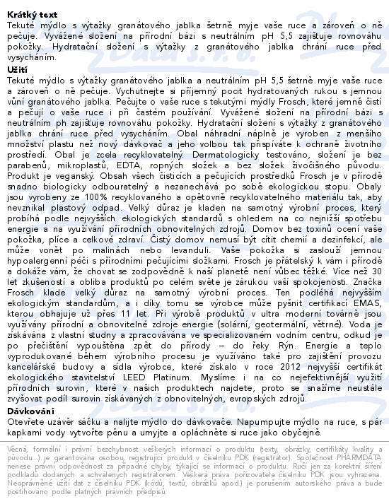 Frosch Tek. mýdlo Granát..jabl.náh.náplň EKO 500ml