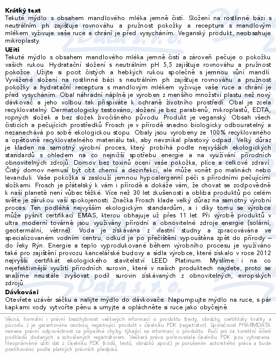 Frosch Tekuté mýdlo Mandl. mléko náplň EKO 500ml