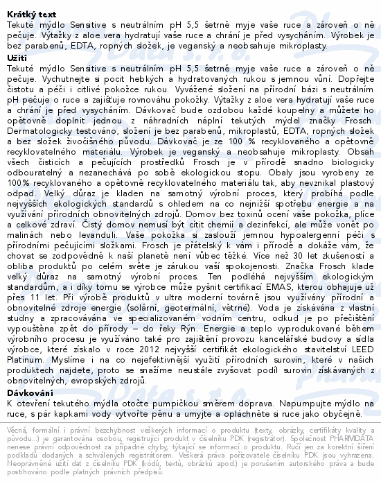 Frosch Tekuté mýdlo Sensitive dávkovač EKO 300ml