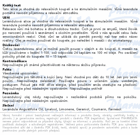 Tato silice je vhodná do relaxačních koupelí a ke stimulačním masážím. Vůně levandule pomáhá navodit příjemnou a relaxační atmosféru.