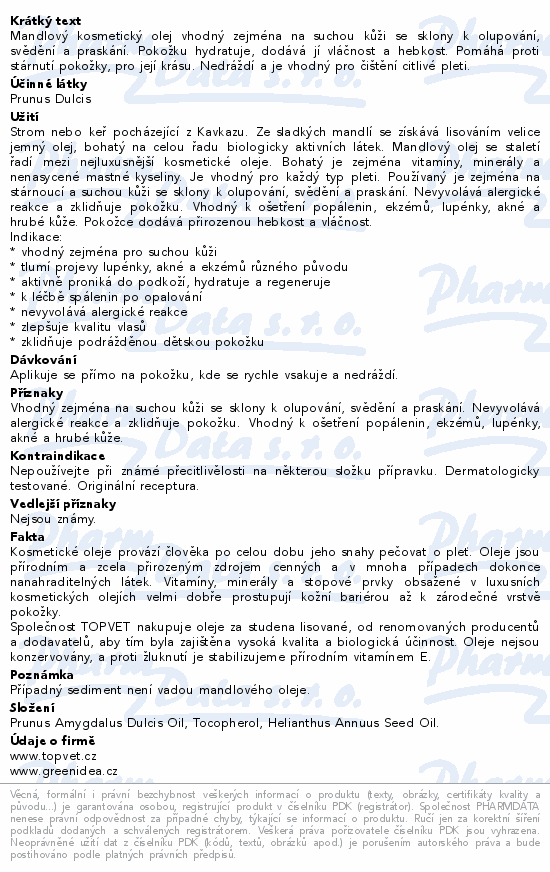 TOPVET Mandlový olej 100% s vit.E 100ml