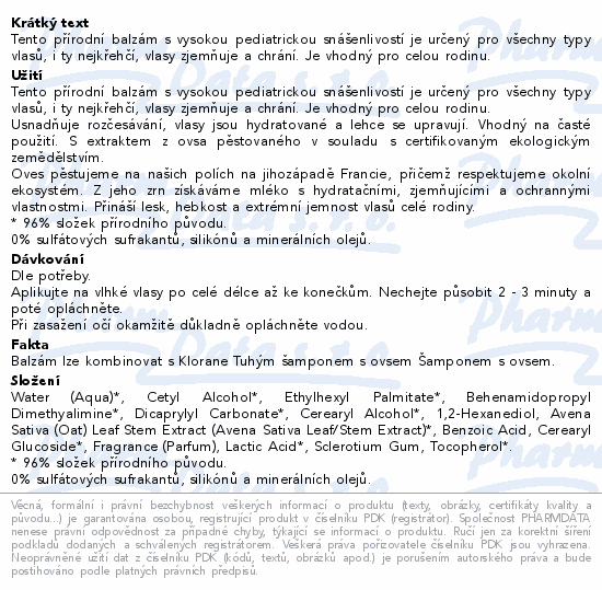 KLORANE Balzám oves 200ml
