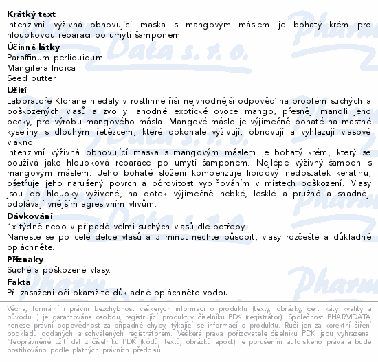 Intenzivní výživná obnovující maska s mangovým máslem je bohatý krém pro hloubkovou reparaci po umytí šamponem.