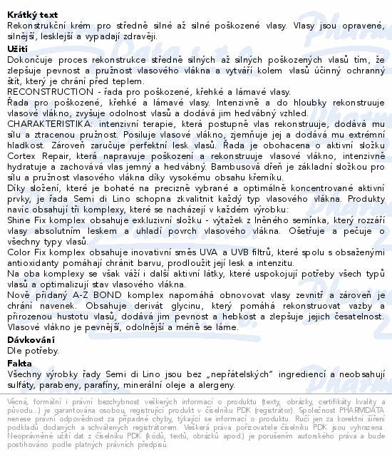 Rekonstrukční krém pro středně silné až silné poškozené vlasy. Vlasy jsou opravené, silnější, lesklejší a vypadají zdravěji.