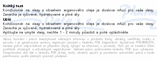 Kondicionér na vlasy s obsahem arganového oleje je doslova infuzí pro vaše vlasy. Zanechá je vyživené, hydratované a plné síly.